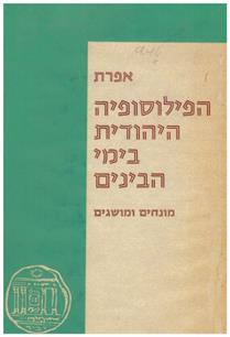 הפילוסופיה היהודית בימי הביניים מאת ישראל אפרת שיטות וסוגיות. 228 עמודים כולל מפתח. מלצ'ט הפרקים הראשיים כוללים מקום וחלל אינסוף, שיטתו הפילוסופית של ר' סעדי הגאון, יסודות המסתורין בשיטתו של הלוי, טבע ורוח במשנת הרמב"ם, מפתחות